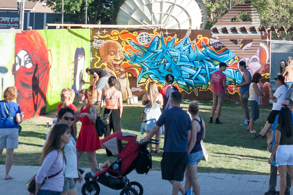 Graffiti art’s presence at the Utah Arts Festival has helped to elevate the medium from its misjudged perspective suggesting it as a criminal act of vandalism and trespassing to a welcome form of public art. There are many examples of business owners in the metropolitan Salt Lake City area that have commissioned graffiti artists to create large-scale murals that have discouraged random tagging and have exemplified the true artistic core of graffiti artists.