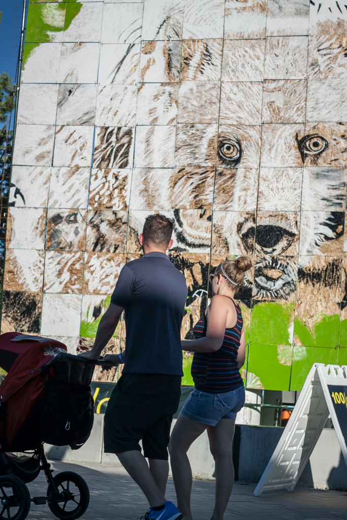 It’s not a capricious process for Fetzer, the Urban Arts coordinator, who relishes using principles of color theory to see how visitors and artists respond to the work. And, selecting the image from a photo he’s take becomes a strategic process. In the project’s first year, he knew it would be a Native American because the image had been in his mind for a long time as a subject for an installation piece. Since then, he has selected animal images and sometimes the decision is made just two days before the festival opens.