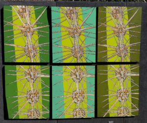 This year’s Artist Marketplace at the Utah Arts Festival represents a continuing evolution in how artists are using media in original ways to leverage the strongest possible forms of expression in their aesthetics and technique. There are examples of repurposed materials for 3-D media art works including model airplanes made out of beverage cans, new expressions of the marriage of science and art such as the wave recordings of sound that are cut into wood, fresh takes on vintage forms such as woodblocks and photographs in which significant depth effects are created with etched glass laid over vintage maps and stunningly real oil paintings of urban landscapes, just to name a few examples.