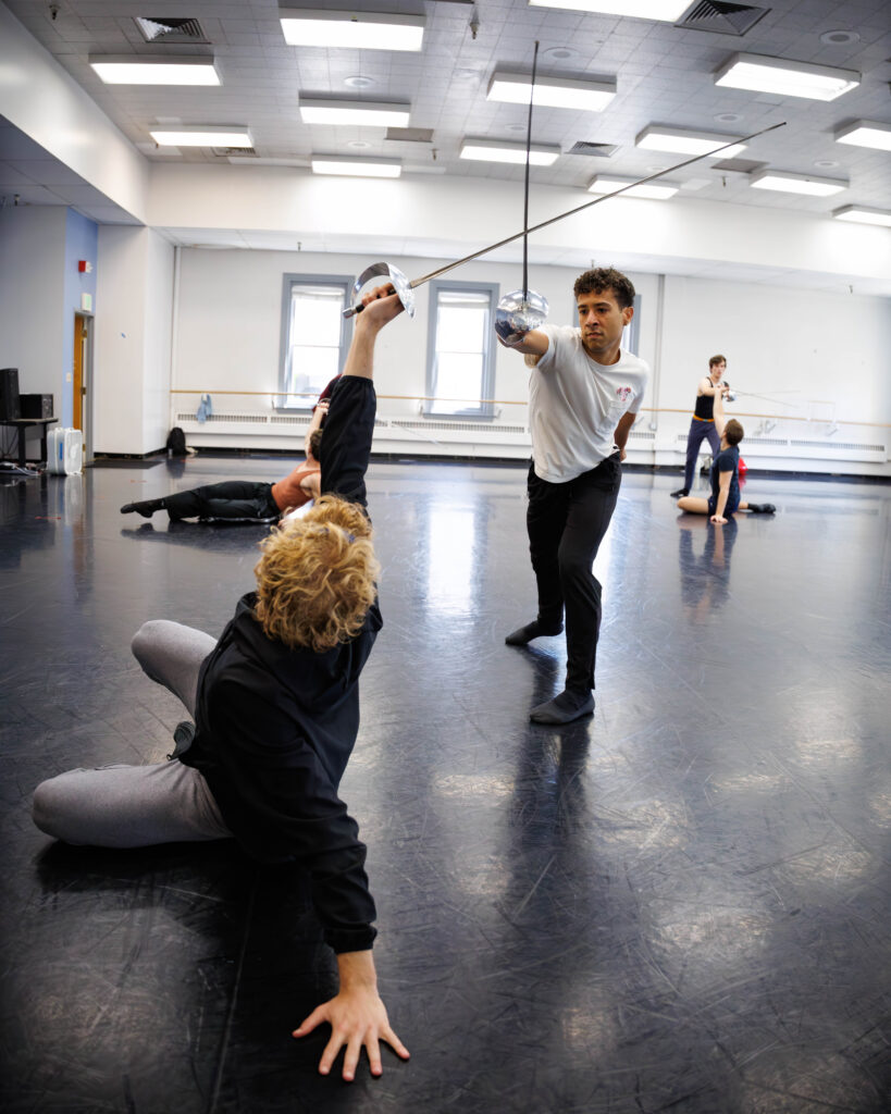 The theatrical punch in Smuin’s version is heightened by, as Adam Sklute, Ballet West’s artistic director, explained, “some of the most complicated sword fighting choreography in ballet that has taken dancers many hours of rehearsal to master.” Bruce Caldwell, former principal artist in the company, is the swordmaster who has been training the dancers in fencing.
