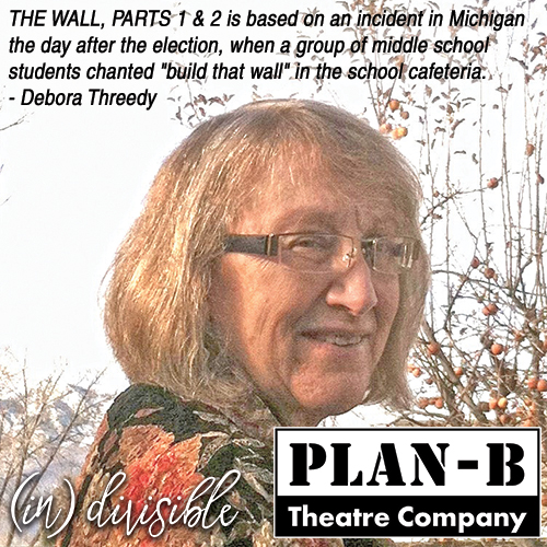 Immigration and the chant to “build the wall” are at the center of Debora Threedy’s pair of plays. In The Wall, Part One, a mother tries to explain why her daughter is seen chanting the anti-immigration slogan in a video that has been shared on social media. The video was taken by the daughter’s friend who happens to the child of immigrants but she did not post it. The daughter says she was doing what the other kids were doing. The mother explains, “And yes of course I did the standard Mom thing: “If everyone was jumping off a cliff would you jump off too?” And the truth is, she would. She is such a follower. I don’t know where she gets that. Not from me. I always had a mind of my own.”