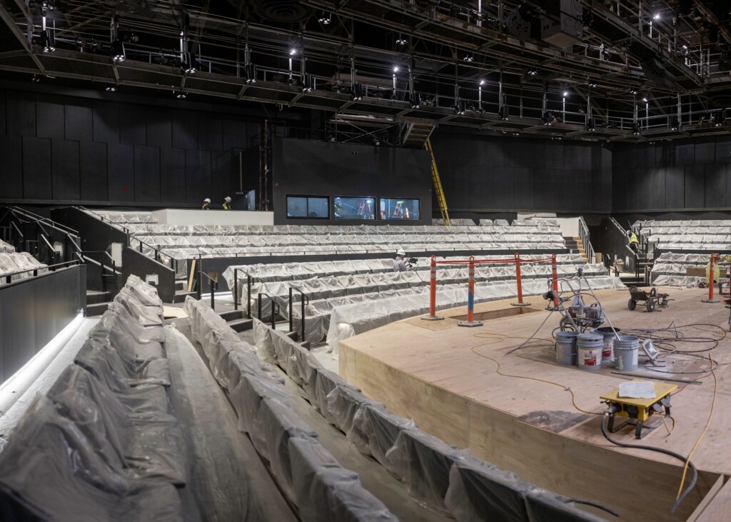 She added that the company had passed on plays they considered staging, with the belief that they could be produced with more impact in a smaller space. One play that the company had hoped to stage in the more intimate theatrical space but couldn’t do so because of construction delays was Heidi Schreck’s What the Constitution Means to Me. Instead, the play was produced last year in PTC’s larger venue.
