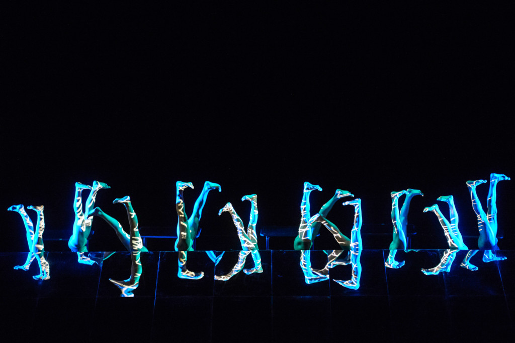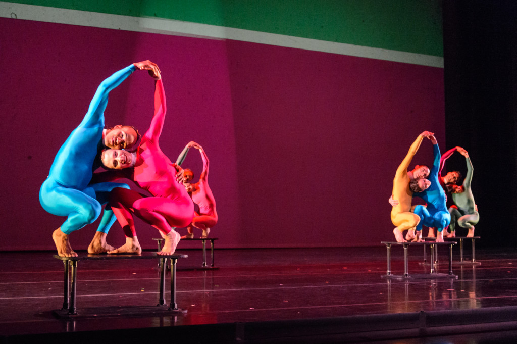 Elements/Elementos! perhaps can be best described as a fast-paced overview of the scientific and engineering aspects of STEM rendered in modern dance over an hour-long program. The works touch variously on marine biology, meteorology, physics, and other classic scientific concepts. The performance includes works and excerpts including Nikolais’ Tensile Involvement and Gallery as well as Physalia, a 1977 work originally choreographed by Moses Pendleton and Alison Chase, co-founders of Pilobolus. Physalia incorporates extensive acrobatic choreography to suggest the imagery of the work’s title, which refers to a Portuguese man-of-war. It’s often mistaken as a jellyfish but in fact, it is what marine biologists refer to as a siphonophore, an animal made up of a colony of organisms working together – an apt description of the creative intent behind Physalia.