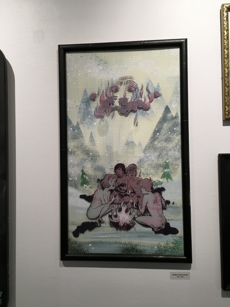 The latest show echoes a style and spirit, especially from the Sixties and Seventies. Banks is a cartoon connoisseur of the classics, stretching back to Tom and Jerry and Betty Boop. A paper mache wall hanging offers up a seemingly disparate array of images, hues, textures and styles that magically coalesce as an enchanting bit of reverie. Banks’ instinct for collages justifies the Static Pattern title of the exhibition – the childish elements do not predominate but they certainly are forever embedded and key to understanding the adult’s vision of what that ‘original impulse’ of youth meant.