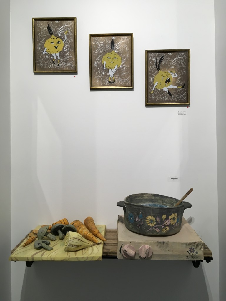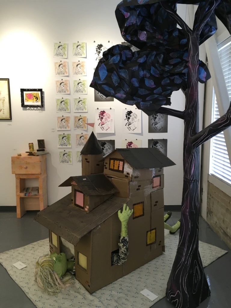 In Static Patterns: The Art of Robin Banks, a show at the God Hates Robot Gallery in downtown Salt Lake City, Banks explores the poetic space of they’s childhood life in a delightfully perceptive array of works in mixed media that include pen-and-ink drawings as well as paper mache sculptures and wall pieces.