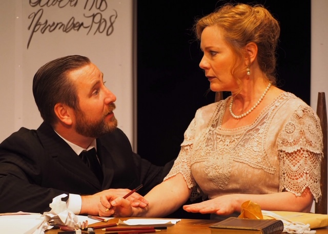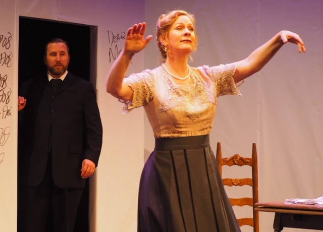 Larson has a unique gift for inflecting the sound of language and idiom from a specific period with a texture that rings relevantly to the ears of a contemporary audience. And, the script is served well subconsciously by her own love for elegant pens, penmanship and the art of writing letters and notes. Hauck’s descent into terminal mental illness is subtle and heart-breaking. Larson’s script evokes a superb sense of chamber ensemble theater but more about this aspect later.