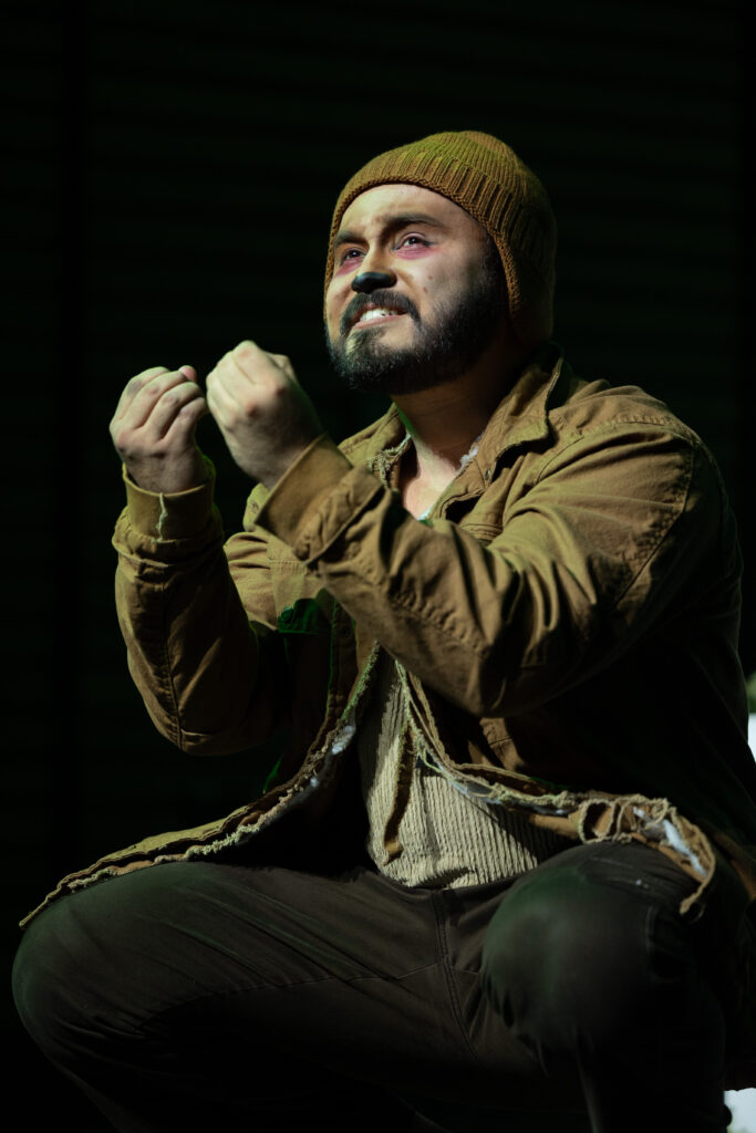 Magee is appropriately naive, even as their characters warm toward each other, but that vulnerable sense also inevitably seals her fate. The Mastiff tells the Moor-Hen, “I’ll get you some hay. I’ll make you a nest. And I’ll take care of you. And even if it rains, you’ll never get wet, and when the moor-wind blows, you’ll never be cold, and I will stand over you and we will be so happy.” Cortez nails the epiphanic punch in his most important lines. When he tells the Moor-Hen, “I won’t let you drift away from me,” one immediately comprehends what will happen even if it is not explicitly portrayed in the play.