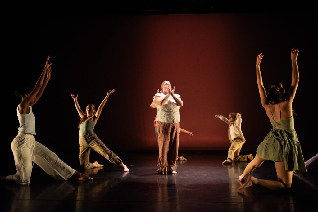 With seven freelance dancers from the community and plenty of pillows, Megan O’Brien’s experimental choreography Soft Landing explored the efforts of finding the cushions for absorbing the challenging events and transitions of life experiences. Quoting writer, educator and coach Nadeen Alalami, O’Brien framed her work around the source’s words: “Soft landings do not erase pain; they do not take away grief or uncertainty, but they make it bearable. They make it possible to fall and not break—to be held in the pain, to gently get up, take a step, and trust again.”